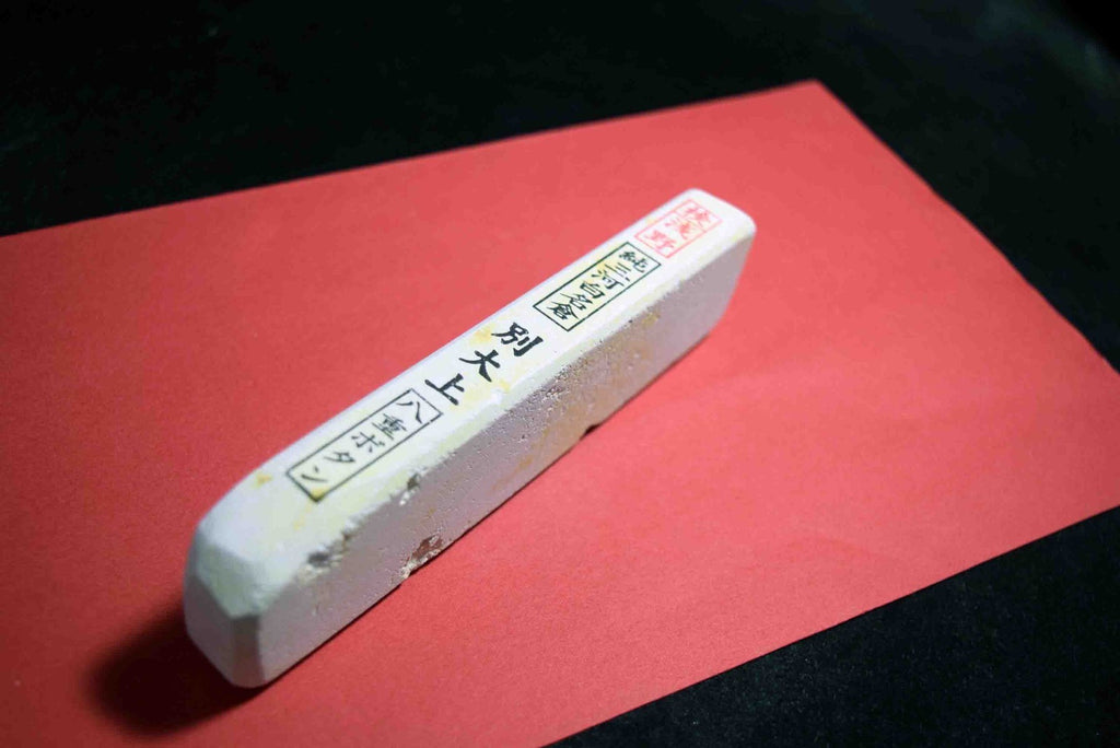 When using it for finishing a hard natural whetstone, water the natural finishing whetstone and rub Nagura on the surface of the whetstone to get the slurryof Nagura containing the abrasive. If you sharpen with this slurry, you can quickly get a good blade.