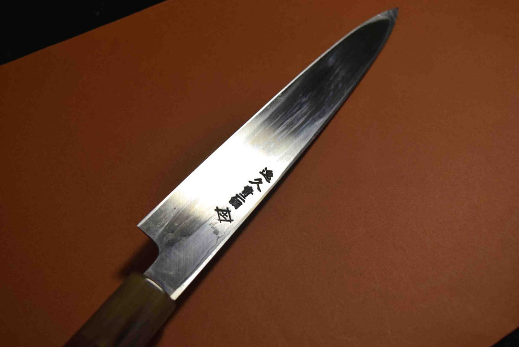 A single edge Blue 2 carbon steel knife. The highest quality knife by Itsuo Doi the 1st class craftsmen in Sakai Osaka.  Sharpened by Naohito Myojin whose sharpening style that combines appearance, stability, and practicality.